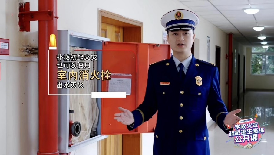 公开课主要包括礼堂疏散逃生演练、教学楼疏散逃生演练、学校宿舍逃生演练、固守待援方法以及初起火灾处置办法五部分内容,全面涵盖学校火灾发现、逃生、扑灭各个过程,为学生冷静有序疏散、教职员工合理有效组织撤离提供指导,也展示出部分消防隐患和逃生误区。