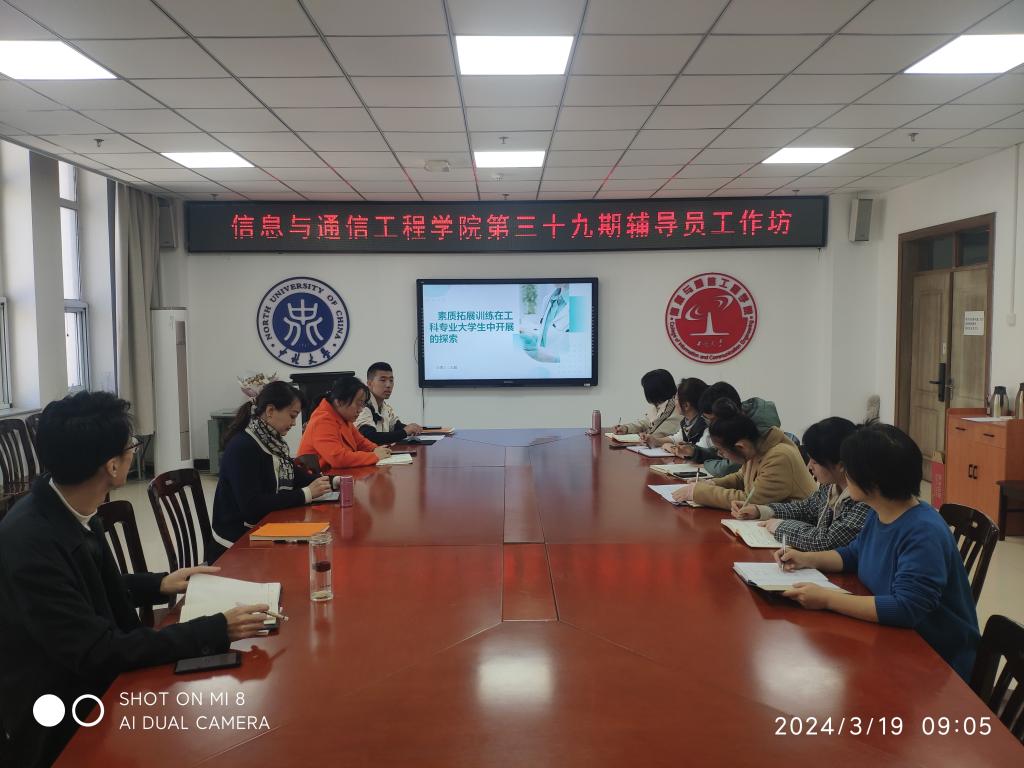 3月19日上午,信息与通信工程学院在院楼713会议室举办第三十九期辅导员工作坊。本次工作坊由学院党委副书记魏媛媛主持,辅导员王彪老师担任主讲人,全体辅导员参加。