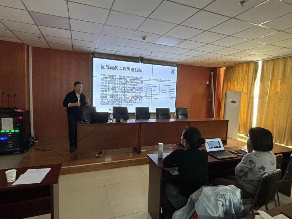2024年3月22日下午14点,中北大学经济管理学院特邀留美国际商务博士、中央财经大学国际经济与贸易学院霍达教授在逸夫南楼301室开展题为《新文科视角下的国际商务谈判行为决策研究》的华彩讲坛。此次讲坛由学院院长赵公民教授主持,周娟美教授和温丽琴副教授等学院骨干教师、国际商务专业研究生及国际经济与贸易专业的本科生等人参与聆听。