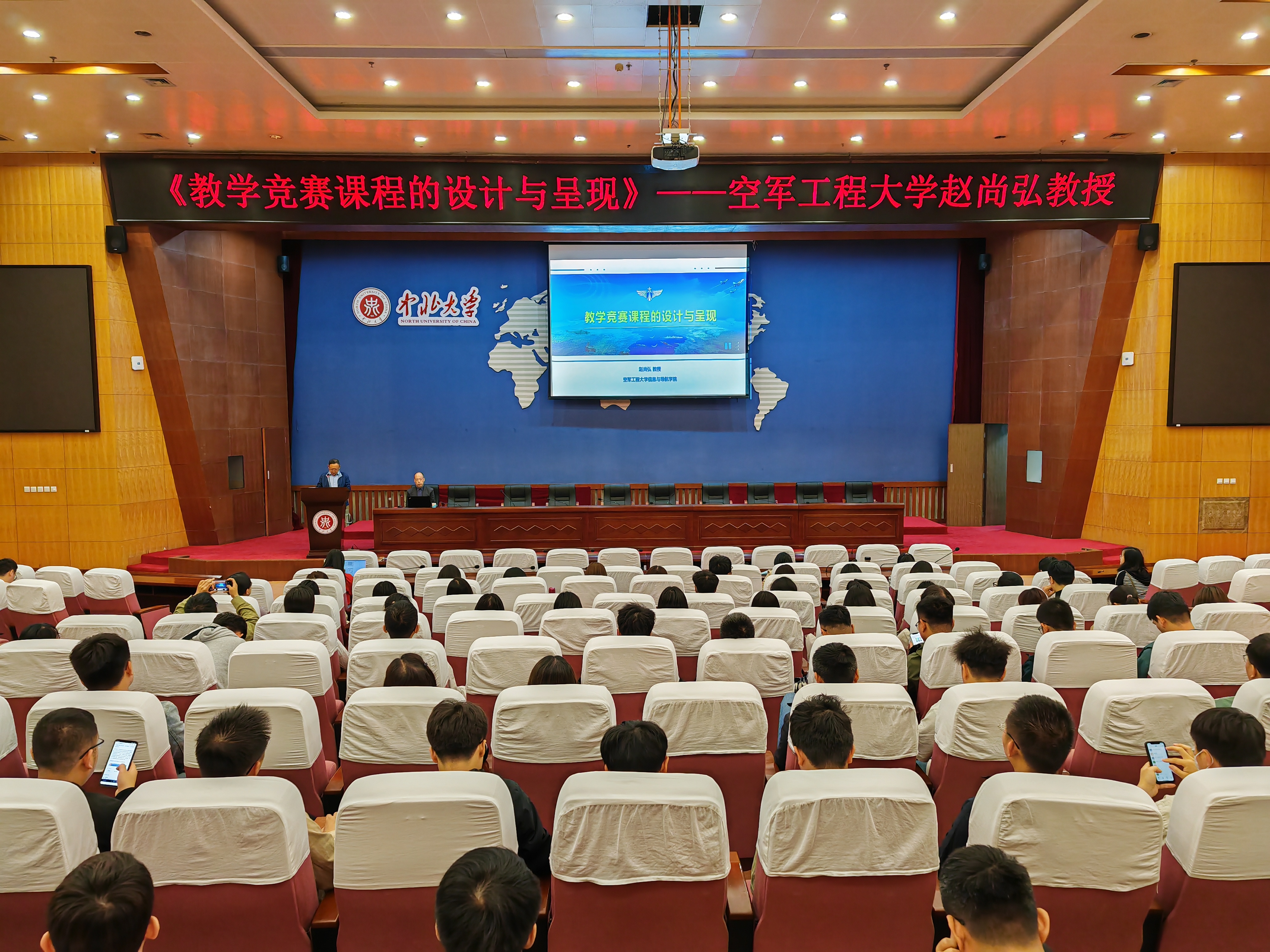 4月24日,空军工程大学赵尚弘教授应邀来校,以《教学竞赛课程的设计与呈现》为题为我校青年教师做教学能力提升专题培训,学校200余名青年教师参加。