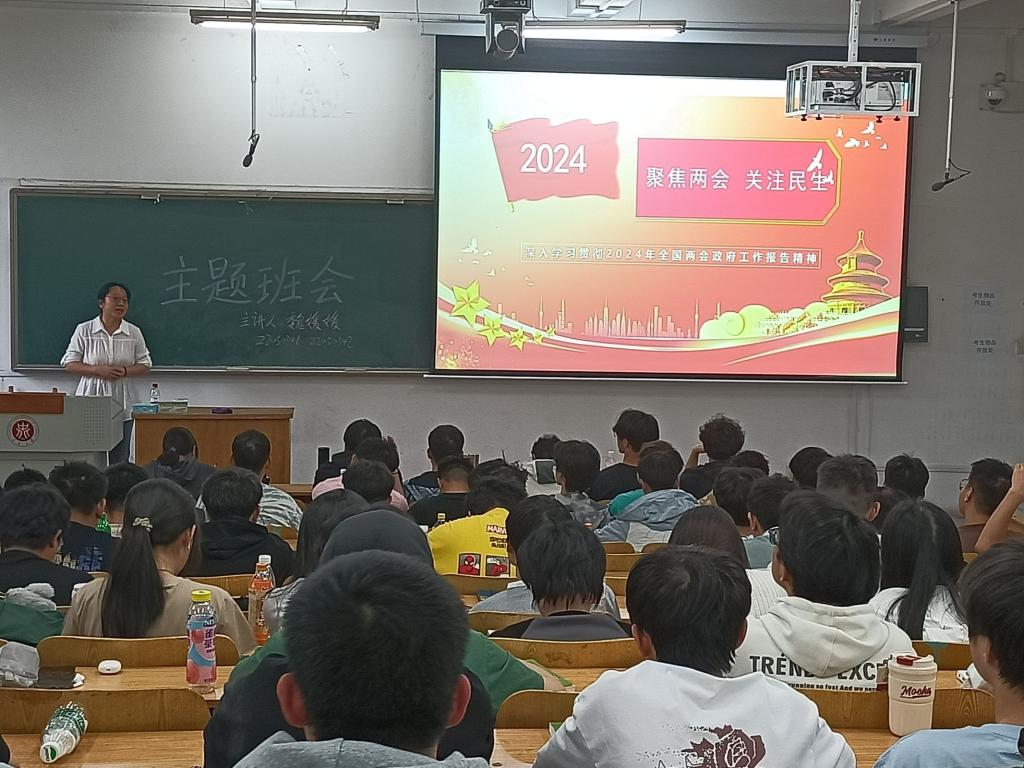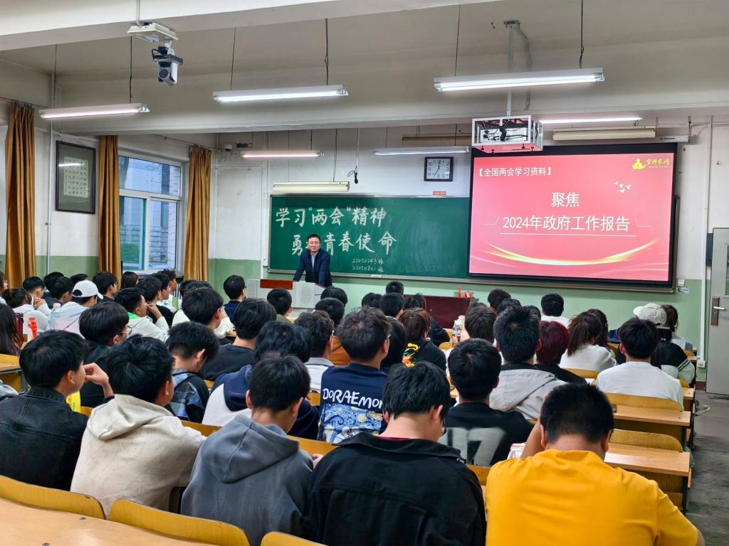 学院党委书记曹凤才围绕“学习‘两会’精神,把握发展新质生产力的内涵要义”展开分享,为同学们剖析了“新质生产力”这一两会热词,启发引导同学们关注“两会”,观察生活,扎实专业理论基础,投身科技革命创新。
