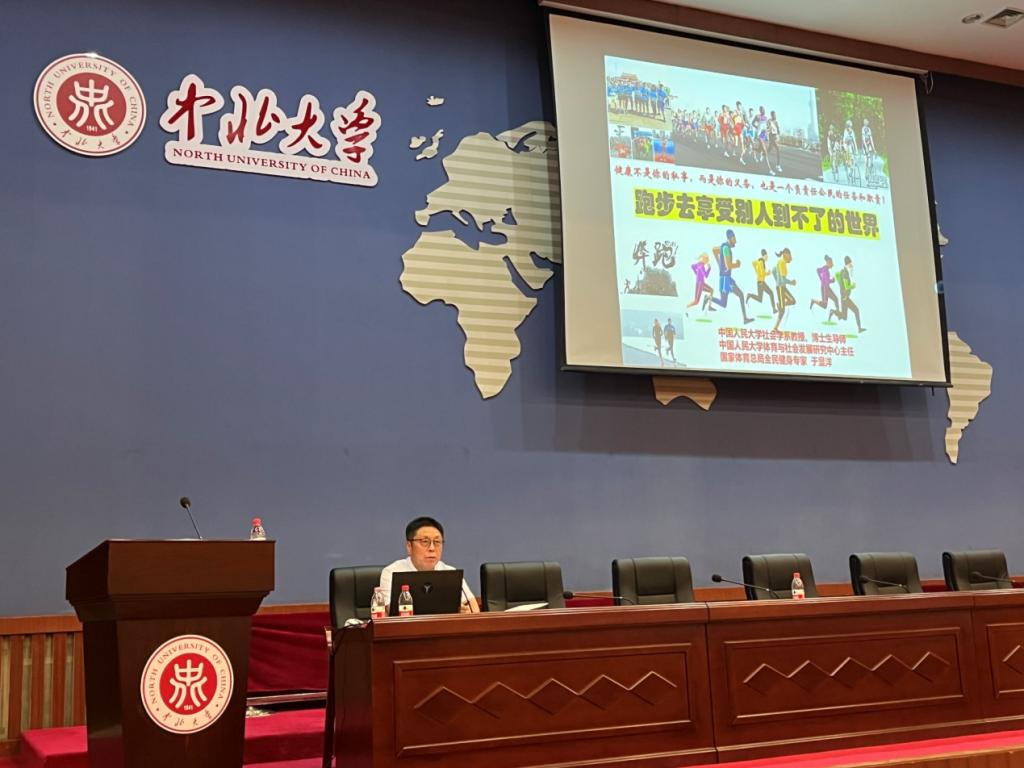 讲座中,于显洋教授结合自身多年工作经验和生动案例,分析了体育对于提高人民综合素质、促进文化交流和社会团结的重要作用。他谈到,体育与健康是每个人的权利和义务,在广泛开展全民健身活动、加快推进体育强国建设的今天,体育不只要为个人赋能,更需要为社会发展赋能、为全球团结合作赋能。希望同学们在学习之余走出教室、走进操场,走出网络、拥抱生活,去呼吸清新的空气、去沐浴温暖的阳光,在活动中领略体育的魅力、从热爱里汲取前进的力量,以奋进之姿、书写青春华章。