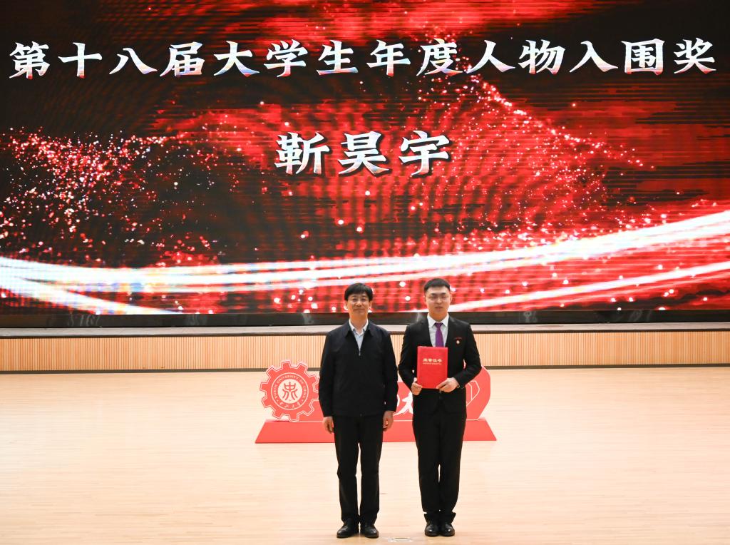 硕士期间靳昊宇同学以专业第一的成绩荣获国家奖学金、学业特等奖学金、学业一等奖学金、综合素质一等奖学金;个人荣誉方面,获第十八届全国“大学生年度人物”入围奖,并得到人民日报、光明日报、《大学生》杂志、中国大学生网的报道(该奖项全国仅有147名、山西省仅有4名)。