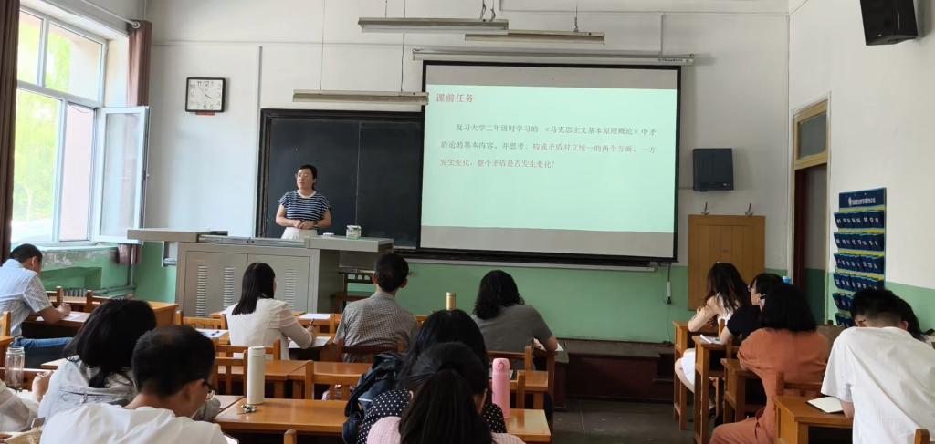 为深入推进大中小思政课一体化进程,全面提高思政课教师的思想政治修养和教育教学水平,马克思主义学院在04104教室组织举办了大中小学中青年教师教学展示活动。活动由教学院长郭玲霞主持。
