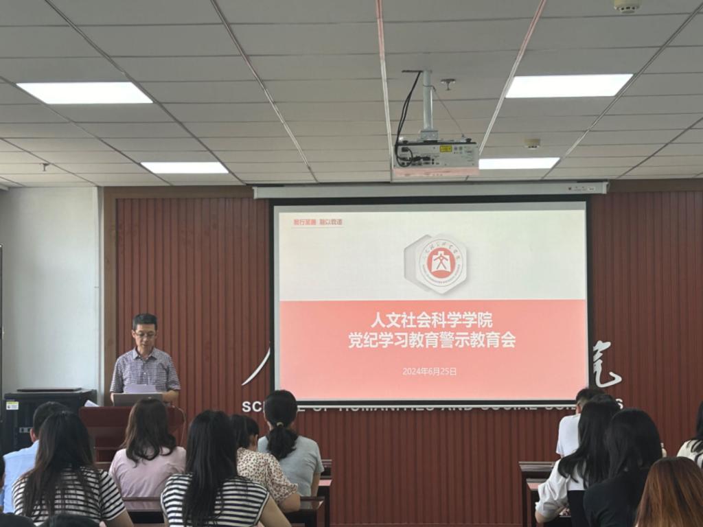 为深入学习贯彻习近平总书记关于党纪学习教育的重要讲话和重要指示精神,推动学院党纪学习教育走深走实,人文社会科学学院于6月25日召开了党纪学习教育警示教育会。学院师生党员参加了会议,会议由院党委书记孙俊伟同志主持。