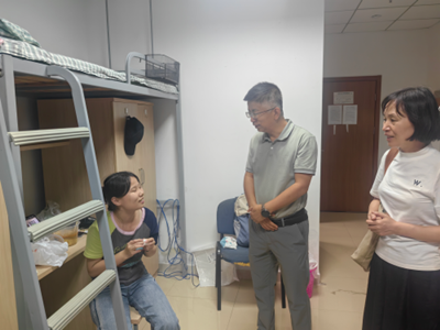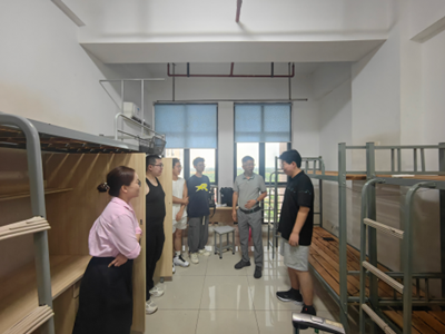 中北大学软件学院对此次校外实训工作高度重视。学院院长强彦教授、辅导员成方圆老师提前深入学生宿舍,对实训基地的住宿环境、用餐环境、实践教学场地、体育运动场地、附近医疗场所及周边生活配套等有关情况进行再次查看确认,细致检查每一处细节,并对公共卫生、食品安全、消防安全等进行了重点强调,确保每位同学都能在安全良好的环境中安心学习生活。报到当日,昆山杰普软件科技有限公司派专车前往苏州站接站,安全有序组织同学们入住基地。院长强彦、辅导员成方圆以及昆山杰普软件科技有限公司副总经理薛军娥、市场总监窦未来一行逐一走访宿舍并慰问同学们,强院长与同学们亲切交流,表达了学院的关心与问候,提醒同学们要遵守基地的安全管理制度、提高个人安全意识、防患于未然。领导、老师们的殷切嘱托让同学们感受到了来自母校的关心和温暖。