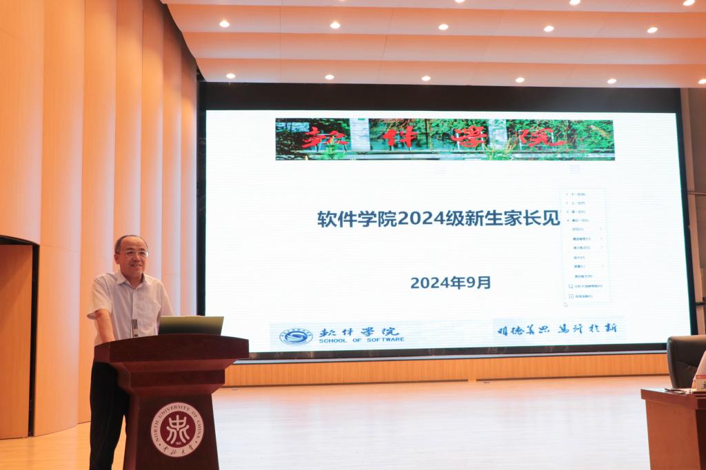 李众副院长围绕软件工程专业将大学四年的人才培养模式向学生家长做了详细的介绍,使新生家长对人才培养情况有了初步了解和认识,为今后的家校共育奠定了坚实基础。同时,他将接下来的工作安排也向家长作了介绍,学院在新生入学后安排了详细的专业教育环节,帮助新同学们迅速了解专业情况,为之后的四年学习奠定良好基础。同时也希望家校能够互相配合、互相理解、通力合作,共同助力2024级学生成长成才,拥有美好未来!
