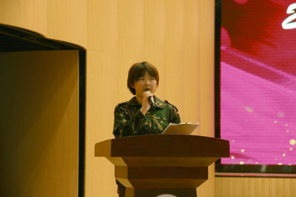 院党委副书记魏媛媛做军训动员,对军训时间安排、组织纪律及注意事项进行强调,鼓励同学们既能“拿得起枪杆子”,又能“拿得起笔杆子”。