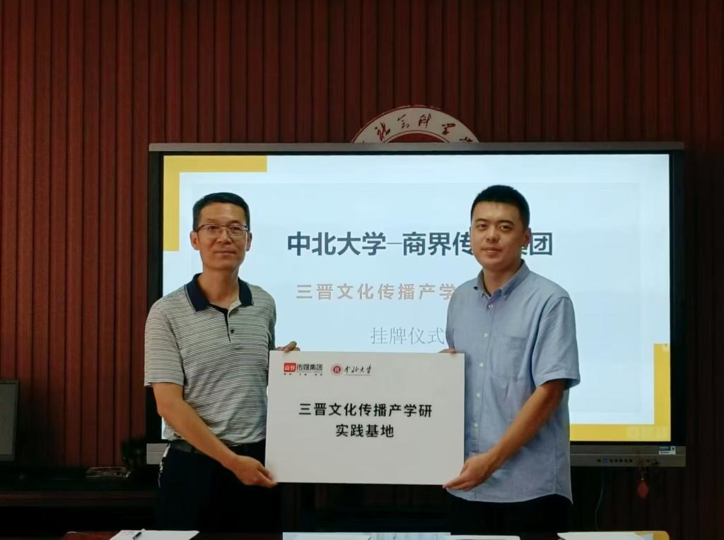 9月19日,商界传媒集团与中北大学人文社会科学学院共建项目——三晋文化传播产学研实践基地正式签约并举行揭牌仪式。商界集团青年事业部董事、总经理祖雪蛟、人文社会科学学院党委书记孙俊伟、副院长廖高会、新闻系主任占文以及部分学生代表参加了会议。