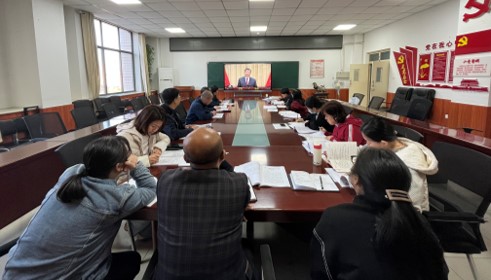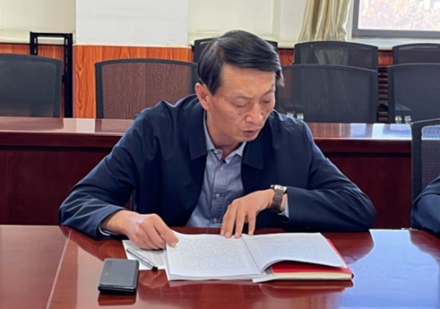 2024年10月22日下午,数学学院在9号楼6层学院会议室召开2024年党委理论学习中心组第十次集体学习扩大会议。会议由院党委书记薛亚奎同志主持,院领导班子成员、党委委员、党支部书记、各系主任、各科室负责人参加会议。