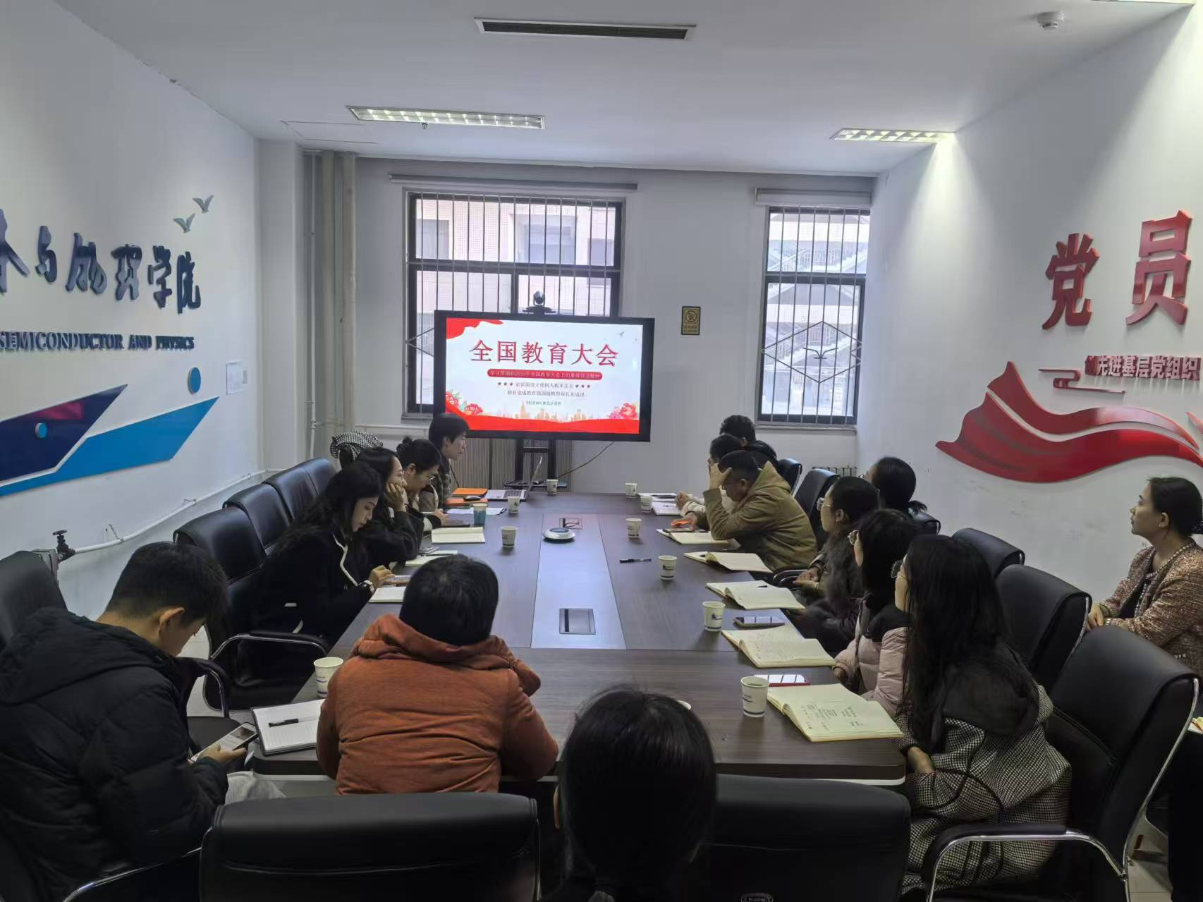 最后,半导体与物理学院团委书记荆伟伟带领大家集中学习了全国教育大会精神,强调教育大会对于高等教育改革发展的重要意义,并号召各位辅导员在今后的工作中以大会精神为指引,进一步强化学生创新意识的培养,注重提升学生的实践能力和创新能力,全面促进学生综合素质的提升。