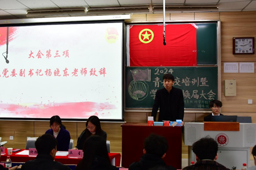 为了传承红色基因、弘扬时代精神、培育时代新人,计算机科学与技术学院于11月16日在09103H成功举办青年共产主义学校暨学生骨干换届大会,出席本次活动的嘉宾有院党委副书记杨晓东老师,院学生科科长魏春燕老师,院党委组织员许颜杰老师,院团委周宇宏老师,院学生科卫星老师,团学组织主要学生骨干及23、24级班团干部。换任大会结束后,青年共产主义学校培训班于11月16日-11月23日进行了正式授课。