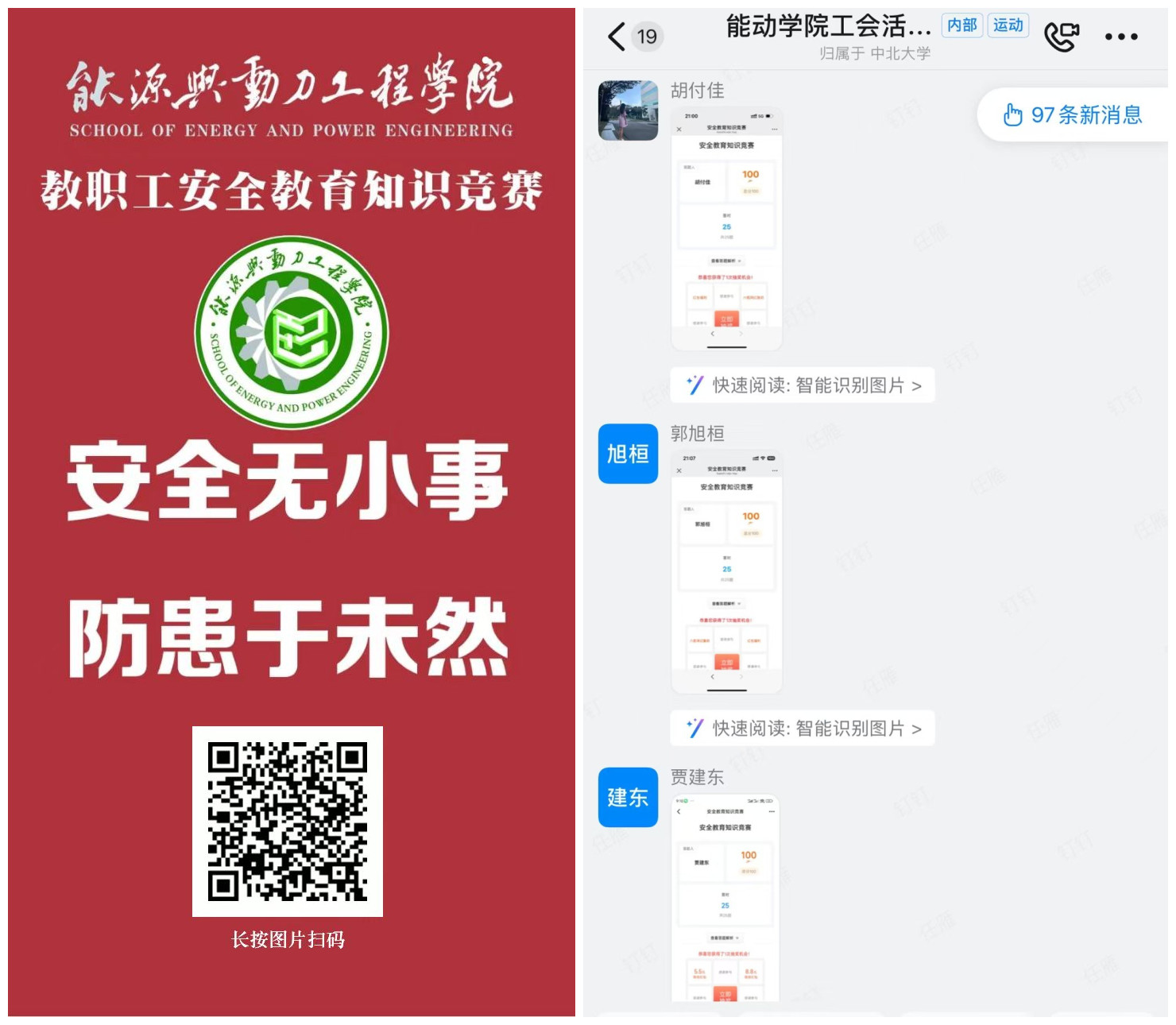 为提升广大教师的安全意识与应急处理能力,结合校安全保卫部《关于组织开展消防安全教育和演练的通知》要求,能源与动力工程学院工会举办安全教育系列活动,通过线上知识竞赛和消防安全讲座等多种形式,确保教学、科研及日常工作的顺利进行。