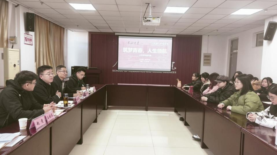 座谈会后,赵文军副书记参加了21100246班“筑梦青春,人生领航---人生导师面对面”主题班会,他从考研和就业两个层面与同学们进行了热烈深入交流,并对同学们提出的问题和想法给予了细致的解答和积极的回应。最后,赵文军副书记对同学们提出三点希望:一要注重提高道德修养,以品德润身;二要注重全面发展,拓展自身边界;三要勇担时代使命,奔赴广阔前程。他勉励同学们,要牢记习近平总书记嘱托,不负青春、不负韶华、不负时代,把握时代脉搏,树立远大理想,立志于服务社会、服务国家,争做有理想、敢担当、能吃苦、肯奋斗的新时代好青年,努力成长为堪当民族复兴大任的新时代经世致用领军人才,在全面建设社会主义现代化国家新征程上书写青春新篇章。
