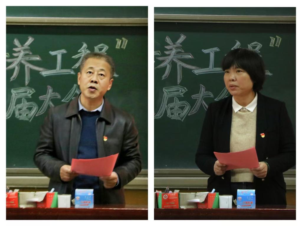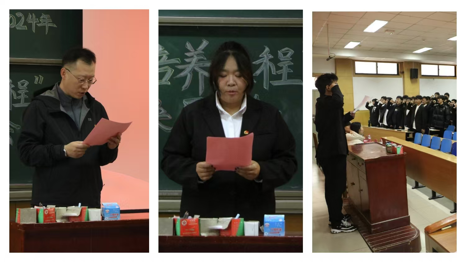 院党委副书记杜瑞平宣读学院第三届第二任学生组织干部名单、乔子庭同学代表本届学生干部就如何发挥学生干部骨干作用进行发言、辅导员屈增宣读课程安排及培训要求。学生代表郝泰同学带领全体培训班成员庄严宣誓。