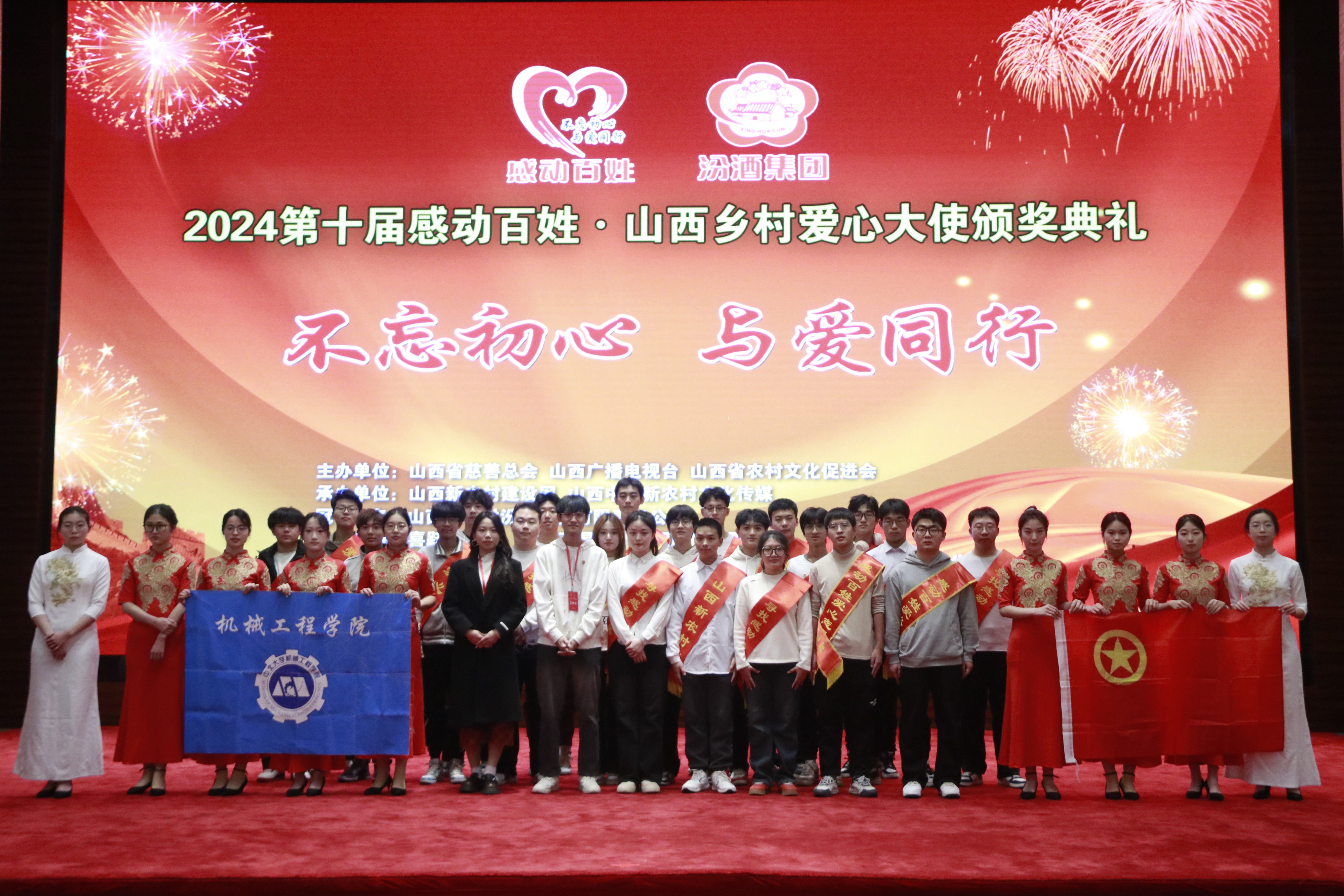 2024年12月7日,第十届“感动百姓·山西乡村爱心大使”颁奖典礼在太原市并州饭店隆重举行。机械工程学院组织了35名热心公益的大学生参与此次活动的志愿服务和礼仪接待工作。