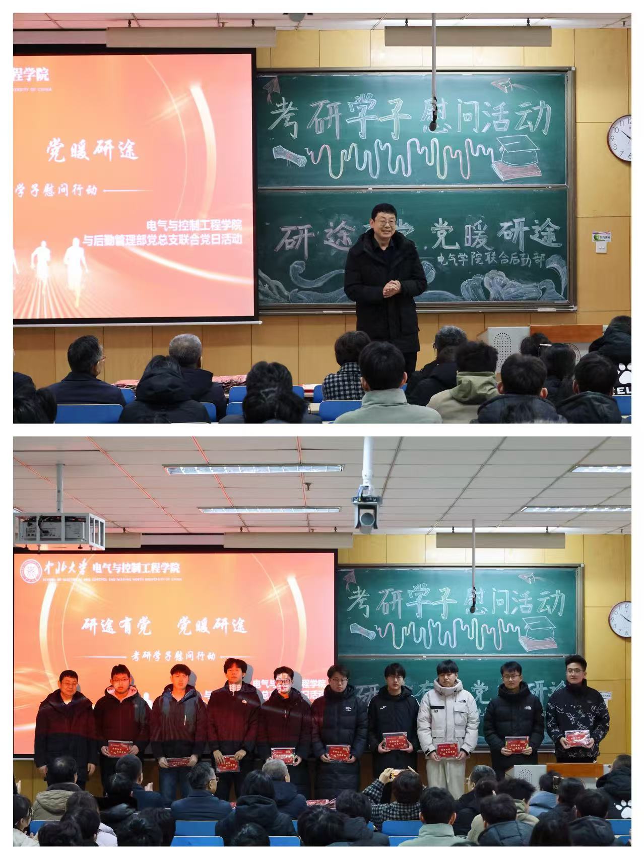 12月13日上午,电气与控制学院党委与学校后勤管理部党总支在11109H举行“研途有党 党暖研途”联合党日活动,为学院260余名考研学子加油鼓劲,充电赋能。学院党委副书记杜瑞平主持了本次活动。
