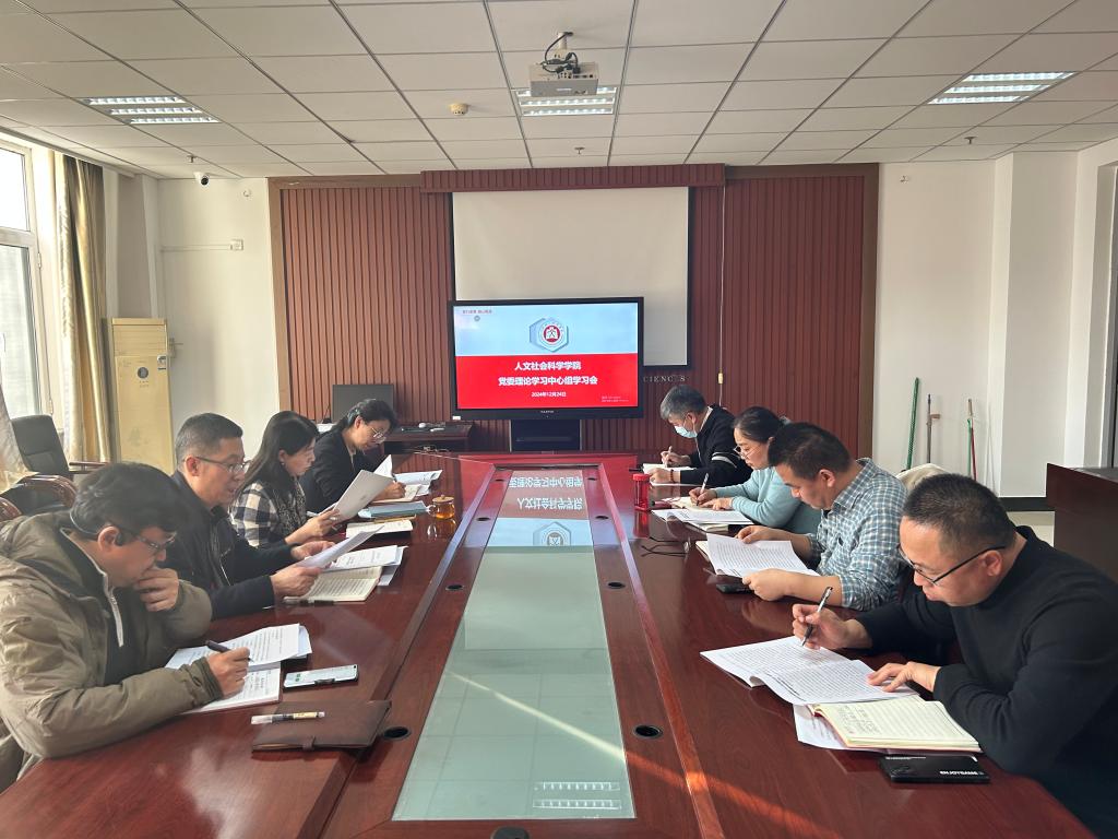 12月24日,人文社会科学学院党委召开了理论学习中心组第12期学习会,会议由学院党委书记孙俊伟主持,学院党委委员、各党支部书记参加了会议。