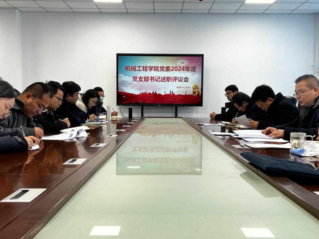 为全面贯彻落实新时代党的建设总要求,加强党的基层组织建设,落实全面从严治党政治责任,紧扣党建工作重点任务和学院各项事业高质量发展,机械工程学院于2025年1月10日上午9时在机械大楼318会议室召开2024年党支部书记述职评议会,全体院党委委员、院领导出席会议,各基层党支部书记参会述职。会议由学院党委书记孙旭东主持。