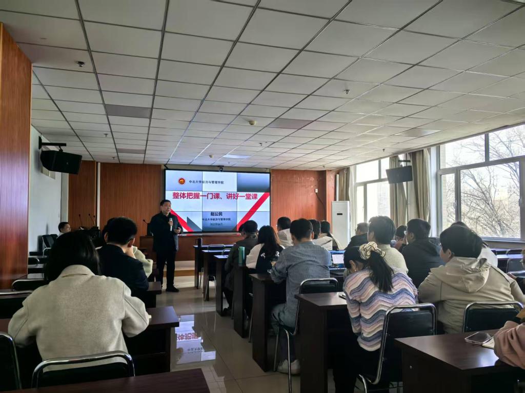 为全面提升青年教师教育教学能力,4月1日下午,经济与管理学院赵公民院长以“整体把握一门课,讲好一堂课”为主题,在逸夫楼南楼301会议室主讲青年教师教学沙龙,学院领导班子成员及青年教师参加了教学沙龙。