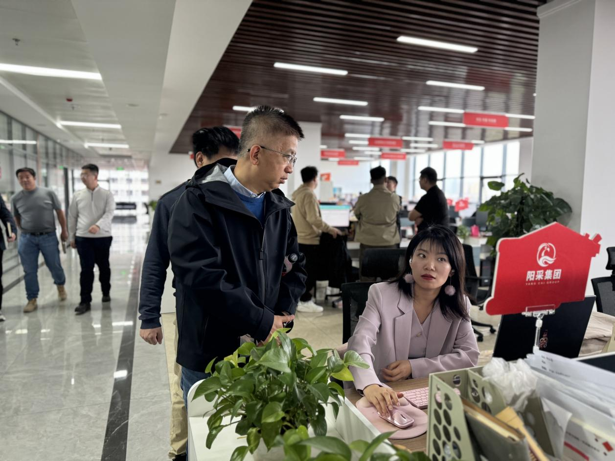 在阳采集团,强彦一行在企业负责人的陪同下观看了企业宣传片及企业文化墙,详细了解了企业发展历程、核心业务及未来规划,并实地参观了企业占地近1万平方米的现代化集采仓库及办公场地,深入了解其智能化仓储管理模式和供应链运营体系。