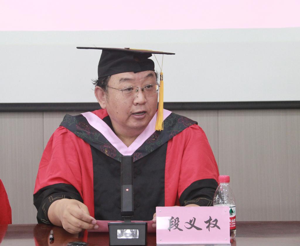 院党委书记段义权致辞。他以“理性、责任、乐观、奋斗”四个关键词,为毕业生们上了生动的“最后一课”。引用尼采“凝视深渊”的警示,提醒同学们在面对复杂多变的世界时,要始终保持理性,不被情绪左右;用“苦难是一所好学校”的辩证思维,鼓励大家勇于在“自找苦吃”中磨砺本领,积累经验;最后以“梦虽遥,追则能达”作为毕业赠言,激励同学们要继续保持奋斗的姿态,拒绝躺平,敢于拼搏,凭借不懈的努力去实现自己的人生理想。