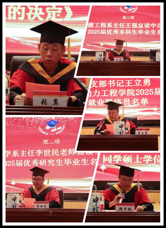 典礼在毕业生陈新轩、沈衍涛、闫佐洋、杨文琦与在校生胡馨语带来的快闪歌声中拉开帷幕,毕业生王晨乾制作的毕业纪念视频以光影镌刻青春记忆。大会在全体师生庄严的国歌声中拉开帷幕。能源科学系主任李世民、能源工程系主任王强分别宣读了2025届优秀研究生和本科生毕业生名单。能源材料系党支部书记王立勇宣读了2025届校友联络员与就业联络员名单,20名毕业生受聘肩负联结母校与校友的使命。