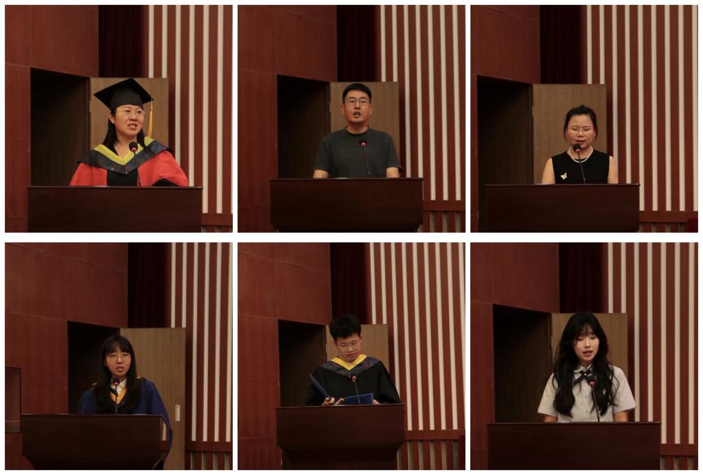 毕业班班主任双维老师寄语学子:永葆求知热情、坚定理想信念、厚植家国情怀。毕业生李乐的母亲尹艳平女士作为家长代表感谢学院的精心培养,并叮嘱毕业生们要常怀感恩之心,牢记学校的栽培,做一个对社会、对国家的有用之才。