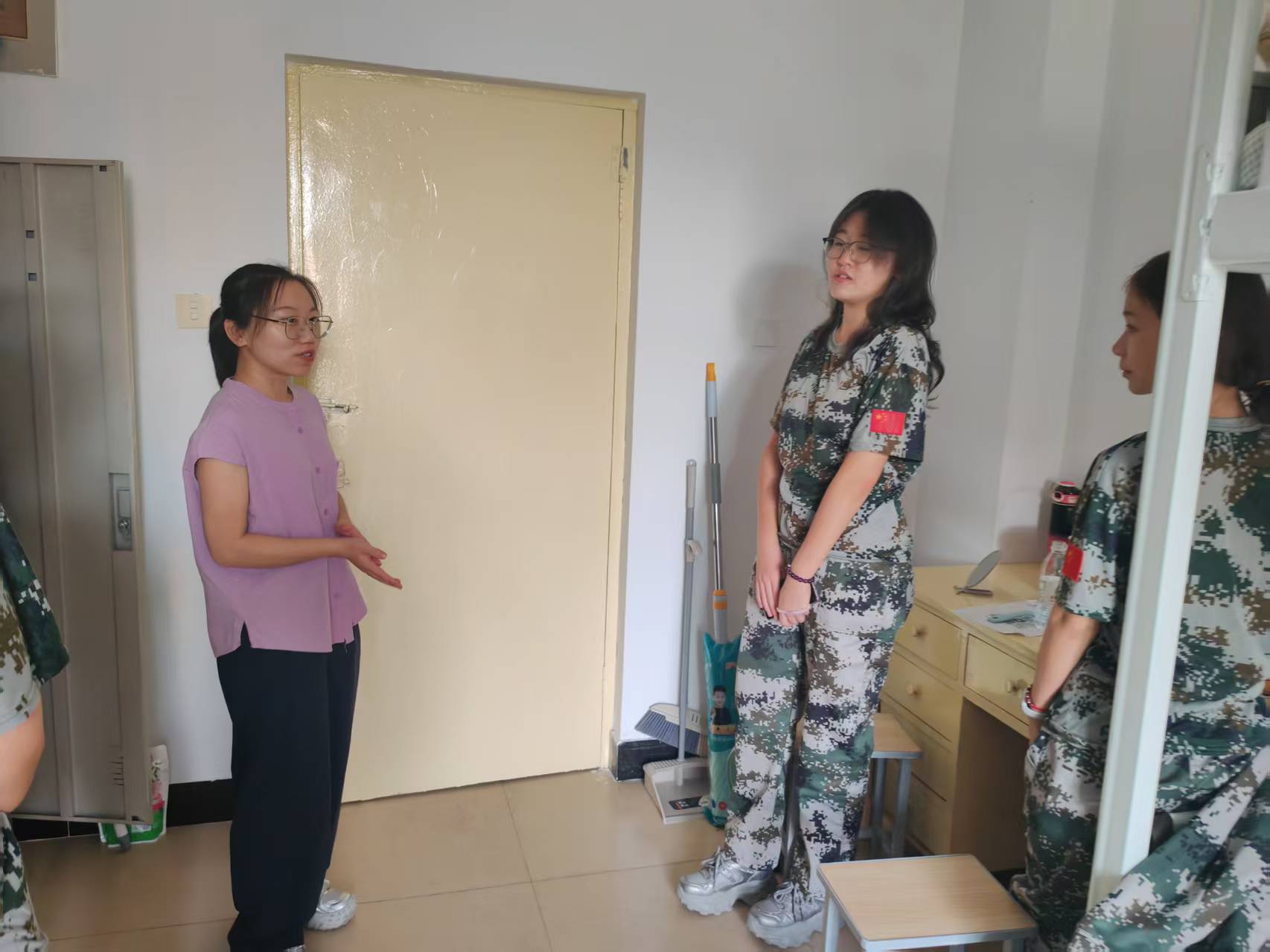 9月14日下午,学院组织2025级新生与班主任、学业导师及军训教官见面会。教官详细讲解了军训期间的纪律要求和行为规范,现场演示军训服装的正确穿戴方式。班主任和学业导师深入新生宿舍,亲切询问同学们的报到适应和住宿安顿情况,认真记录并协调解决新生遇到的困难,鼓励大家积极调整心态、尽快转变角色,以昂扬姿态迎接大学生活。走访活动有效搭建起师生沟通的桥梁,让新生切实感受到学院的关怀与温暖。