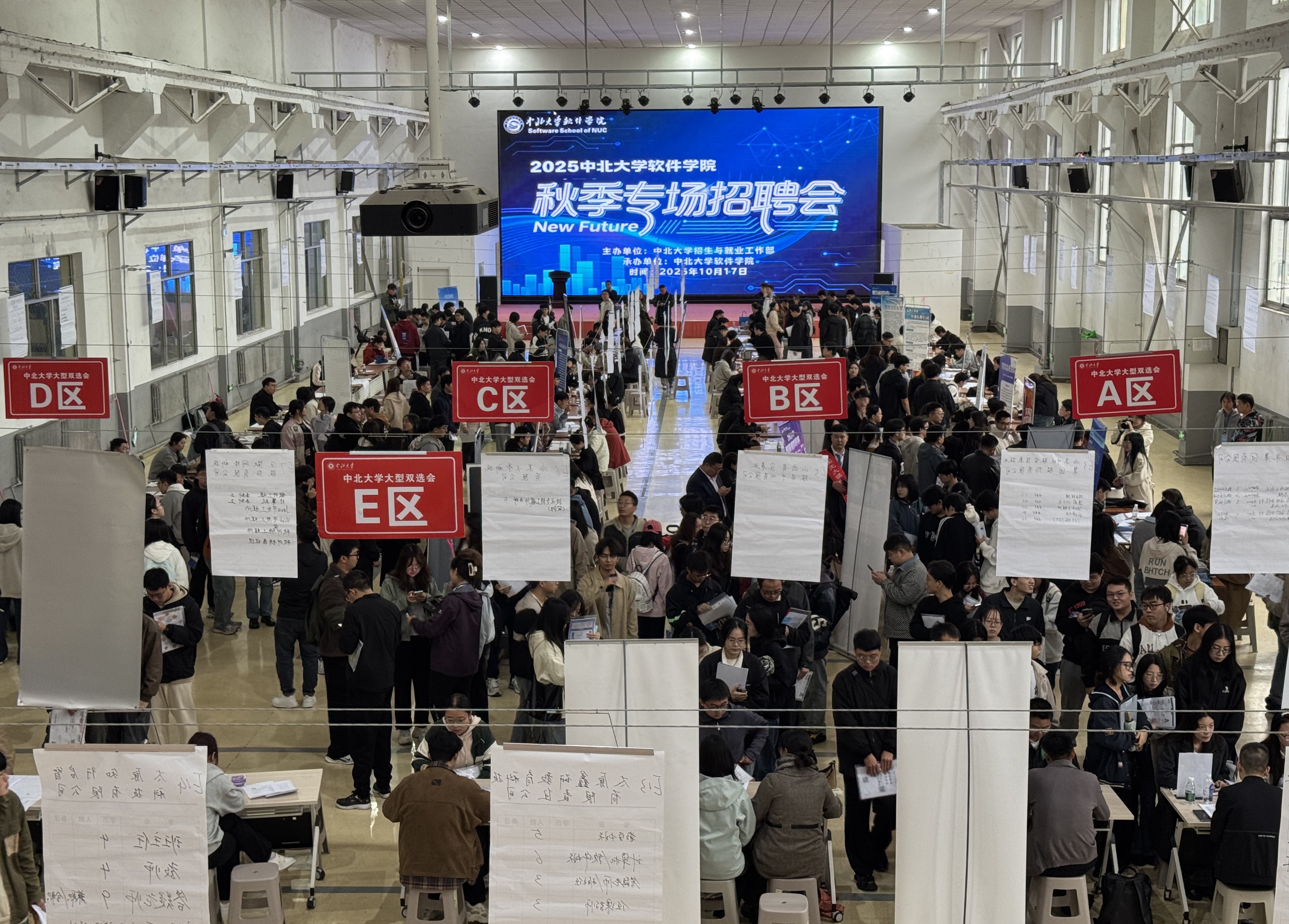 10月17日上午,由中北大学招生与就业工作部主办、软件学院承办的2025年软件学院秋季专场招聘会在学校东区训练馆顺利举行。此次招聘会旨在搭建精准高效的校企对接平台,助力2026届本硕毕业生实现高质量就业,吸引了省内外近80家优质企事业单位参会,为学子们带来千余个就业岗位。