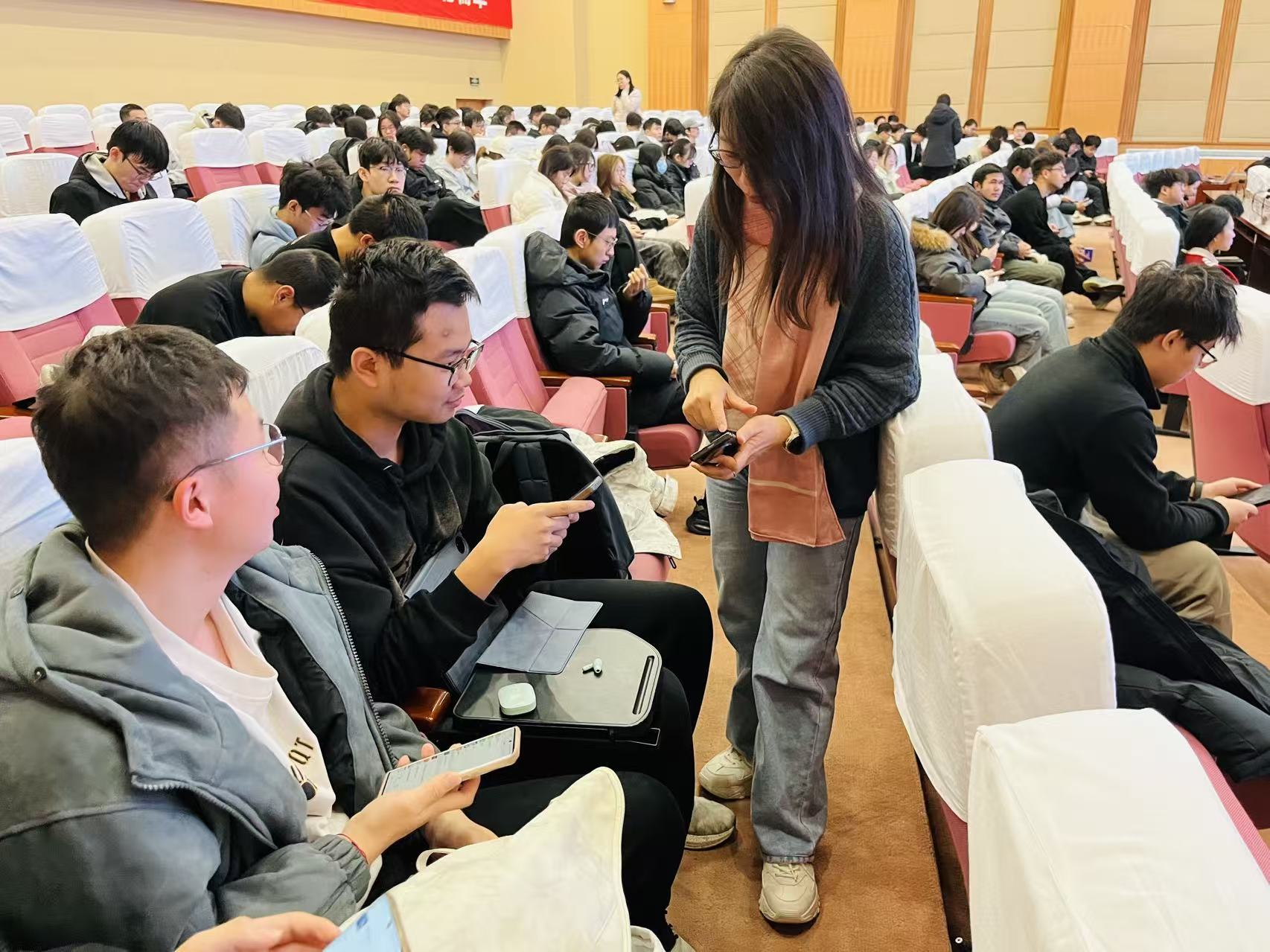 12月5日,学院在图书馆五层报告厅,举办2026年考研报名情况分析会暨中央民族大学理学院研究生招生宣讲会,中央民族大学理学院光电信息科学与工程系主任薄淑晖、光学工程导师组组长李传波、电子信息导师组组长郭红莲、光电信息科学与工程系副主任王丽娟,信息与通信工程学院辅导员孟伟、左冠华、王彪、沈晨,参加了活动。本次活动吸引了200余名学生参加。