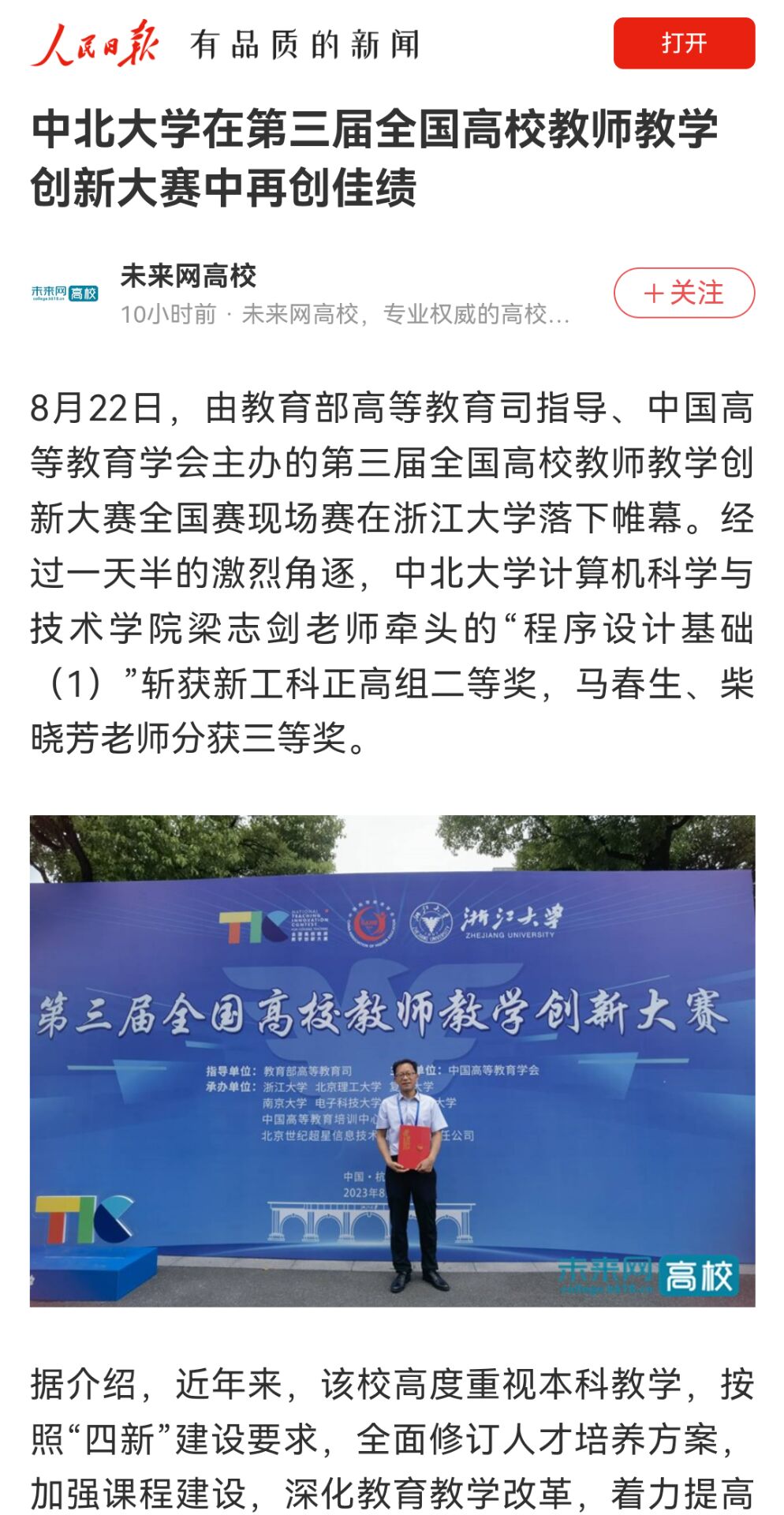 【人民日报】中北大学在第三届全国高校教师教学创新大赛中再创佳绩