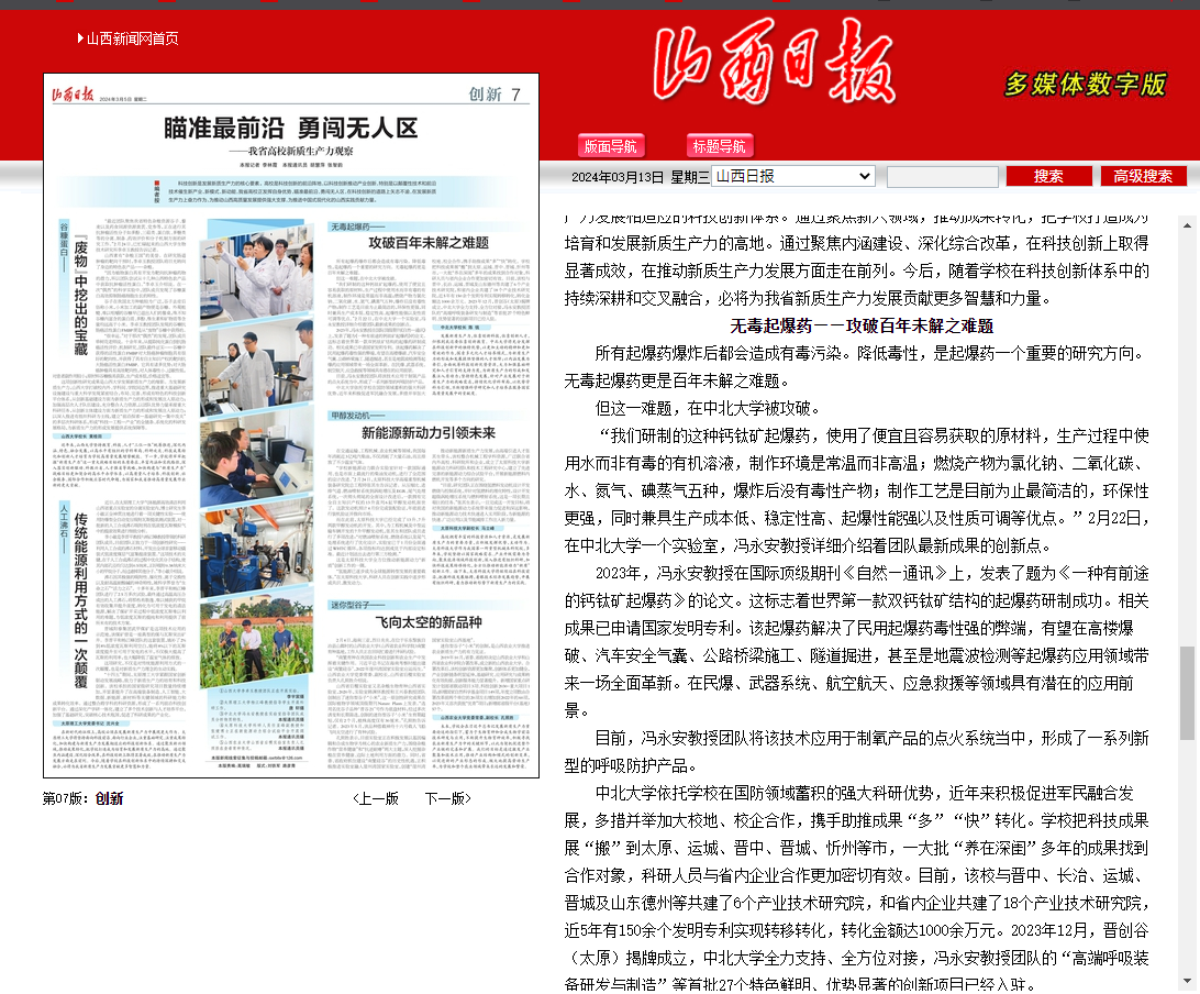 【山西日报】瞄准最前沿 勇闯无人区 ——我省高校新质生产力观察