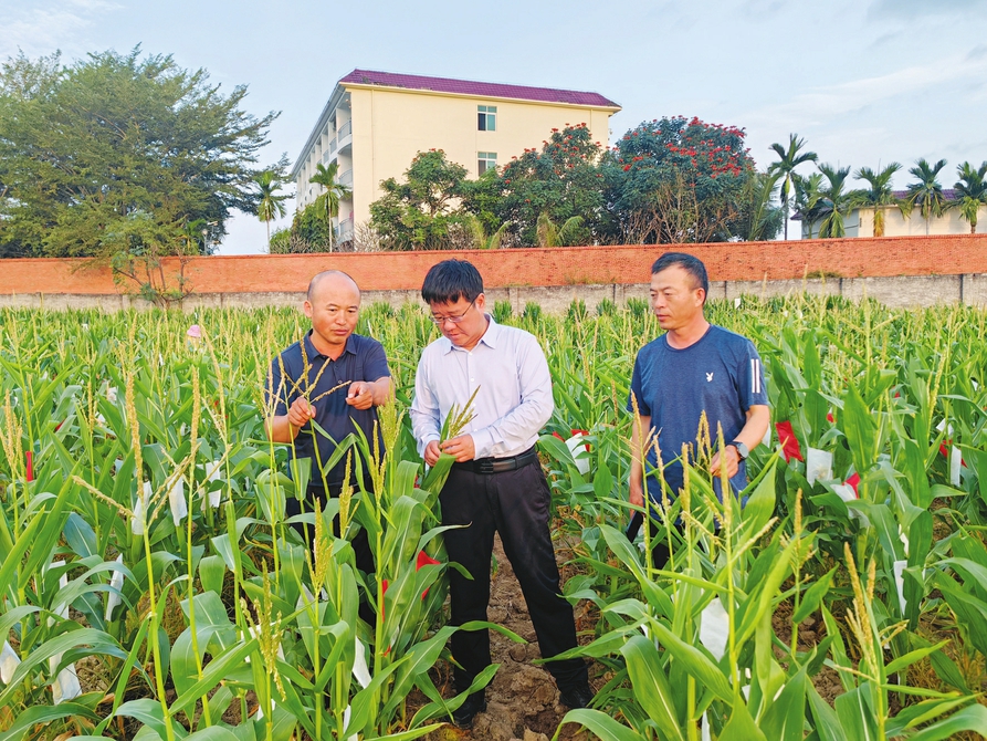 2月4日,海南三亚,烈日炎炎,在位于乐东黎族自治县山脚村的山西农业大学(山西省农业科学院)南繁育种基地,工作人员正在田间忙着进行科研试验。
