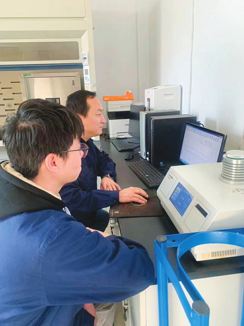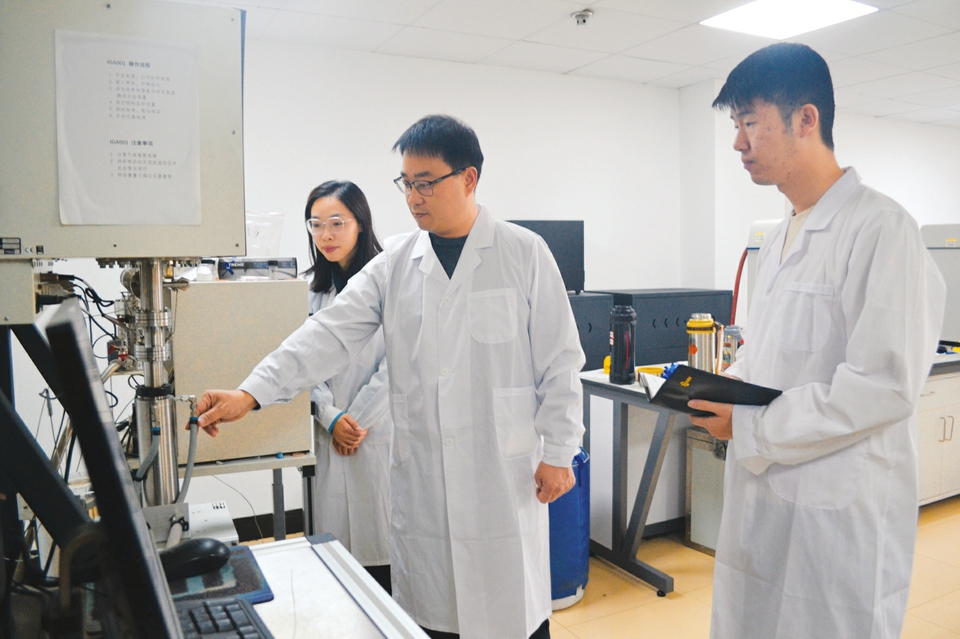 ③中北大学冯永安教授在实验室指导团队成员分析物质特性。 本报通讯员摄