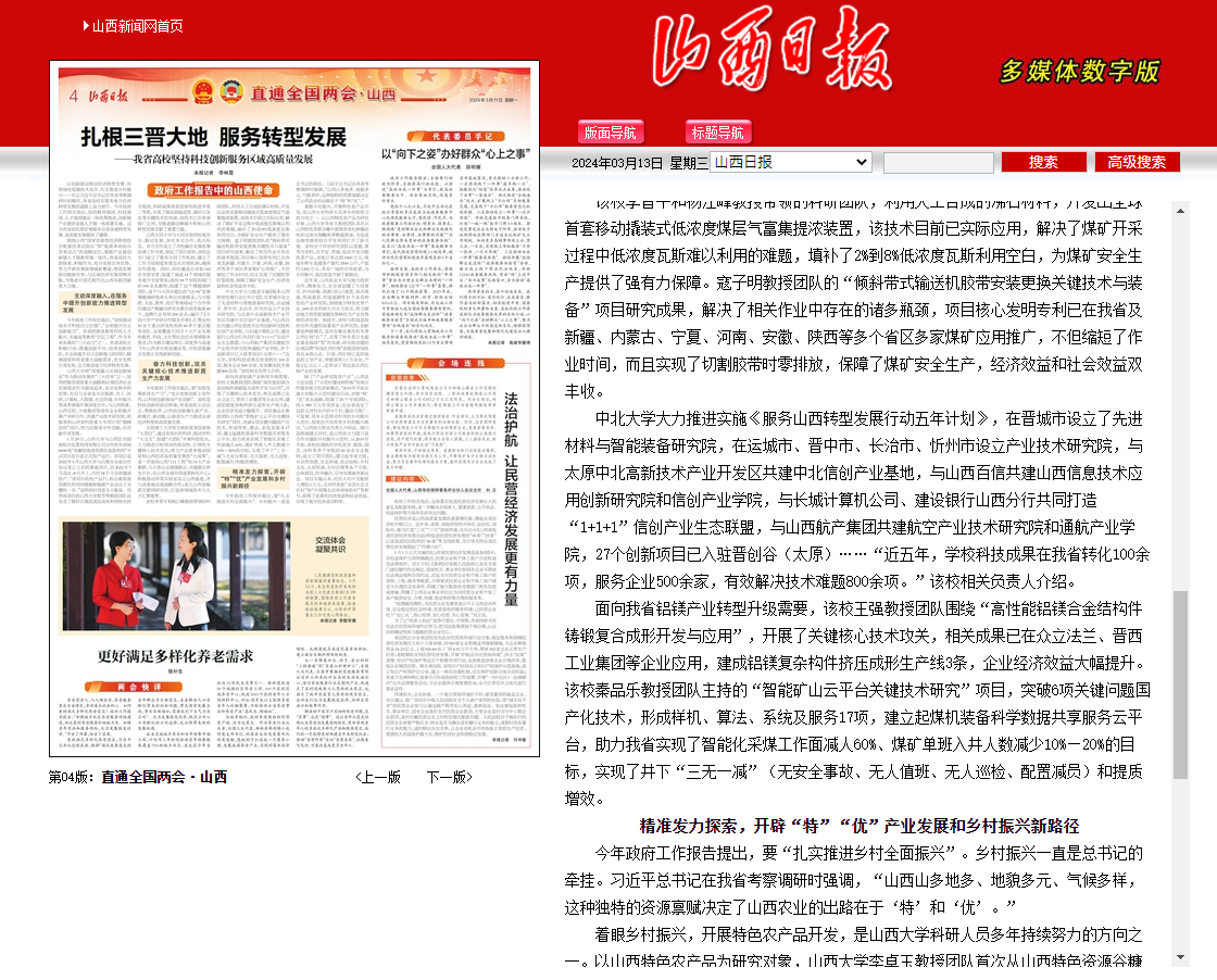 【山西日报】【政府工作报告中的山西使命】扎根三晋大地 服务转型发展 ——我省高校坚持科技创新服务区域高质量发展