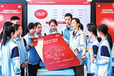 4月14日,内蒙古呼和浩特市玉泉区委网信办、区团委联合市第二十七中学开展“国安有我·青春挺膺”迎接全民国家安全教育日活动。丁根厚 摄