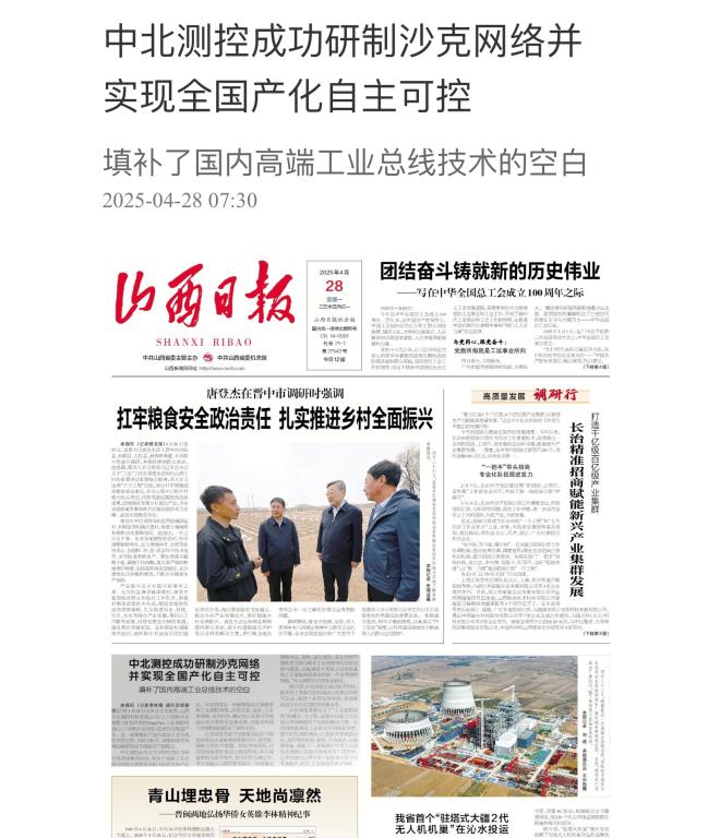 【山西日报】中北测控成功研制沙克网络并实现全国产化自主可控 填补了国内高端工业总线技术的空白