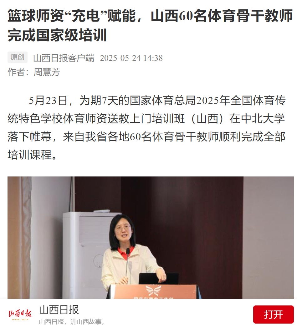 【山西日报】篮球师资“充电”赋能,山西60名体育骨干教师完成国家级培训
