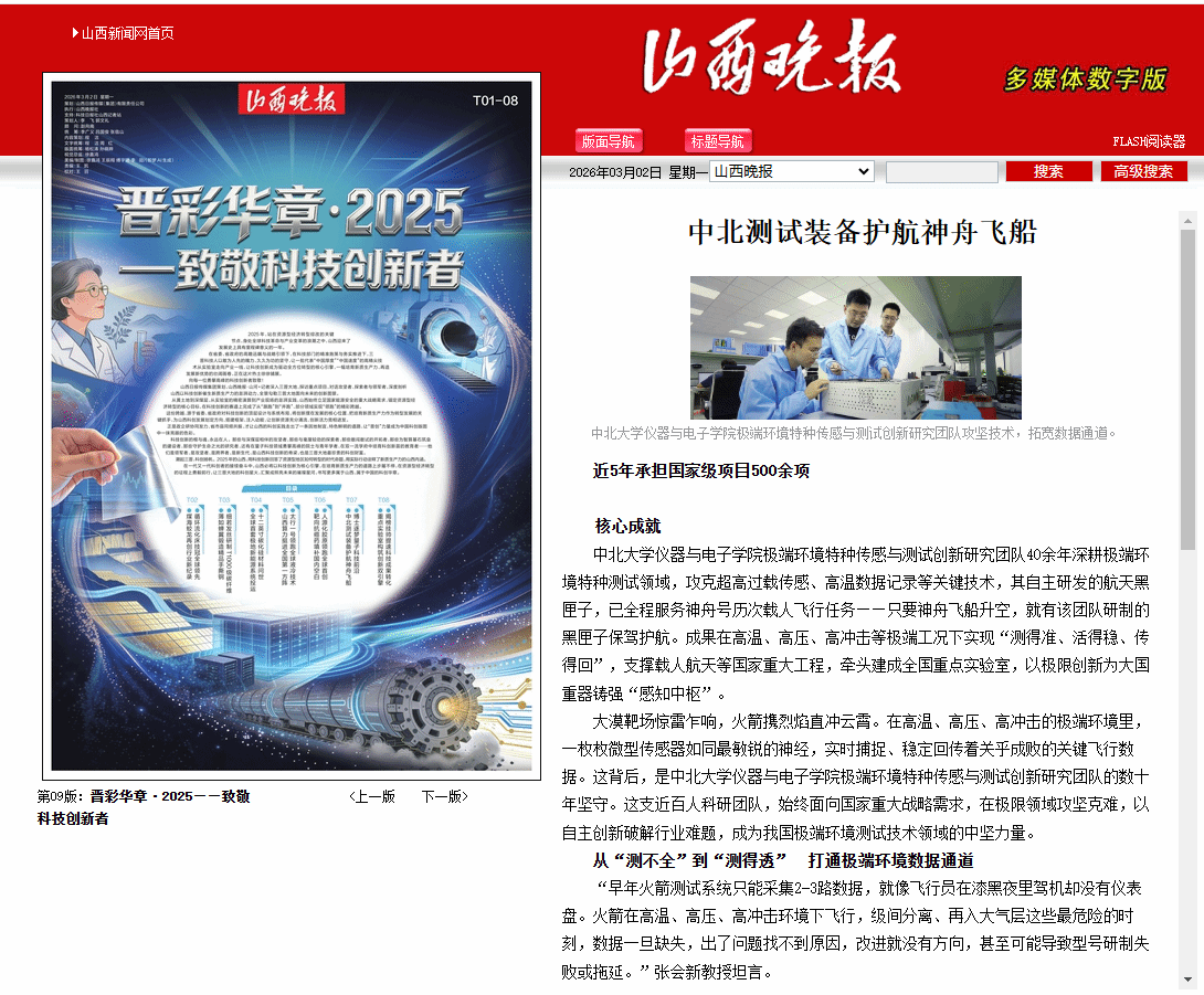 【山西晚报】晋彩华章·2025——致敬科技创新者 中北测试装备护航神舟飞船