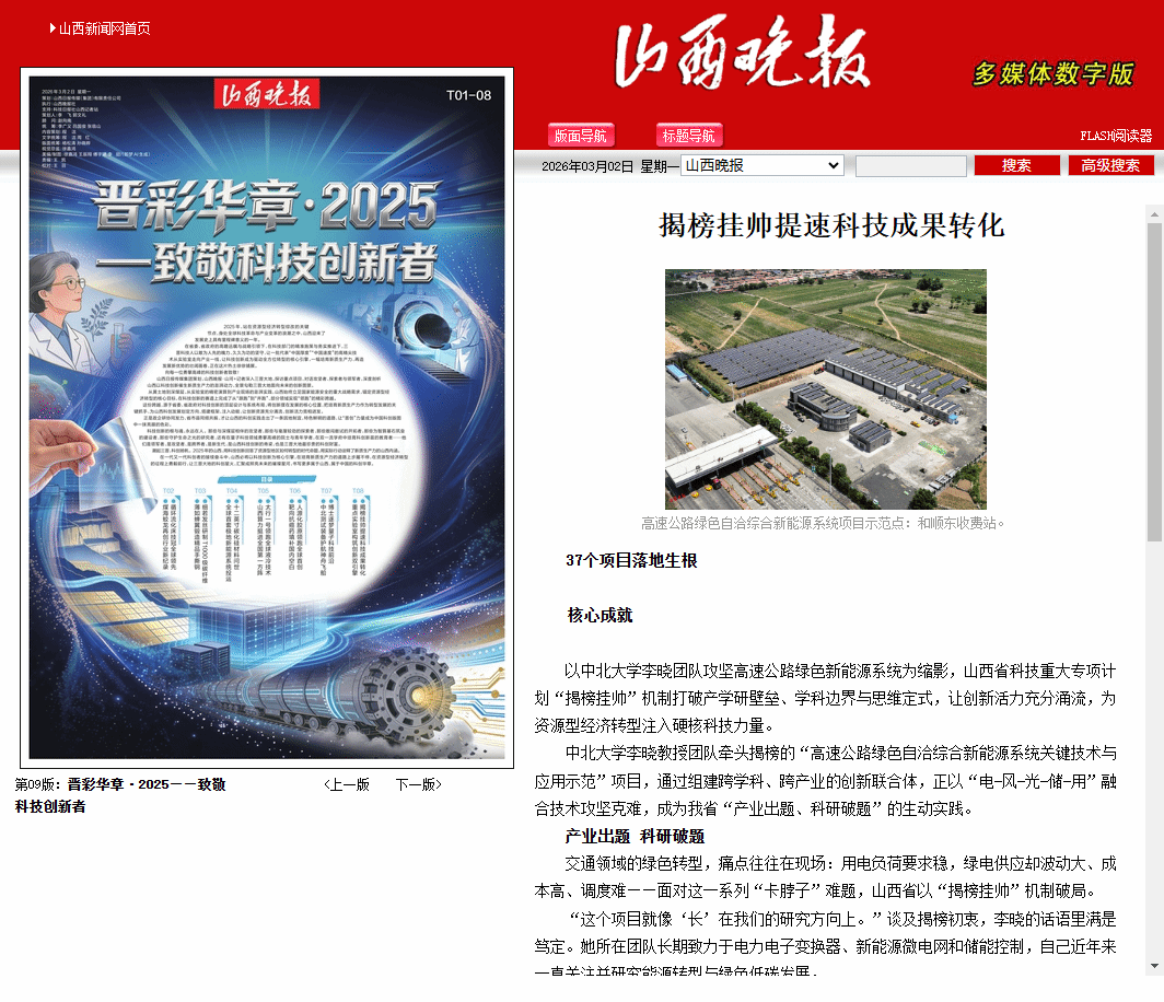 学科壁垒的打破同样关键。该项目由中北大学牵头,联合太原理工大学、山西交控新能源等5家单位,组建跨领域创新联合体,涵盖电力电子、材料科学、数学等多学科专业。“以前是单一学科‘各自为战’,现在必须跨领域协同。”李晓说,不同学科的智慧碰撞,让高速公路绿电自洽“怎么稳”“怎么省”“怎么融”三大核心难题有了高效破解路径。