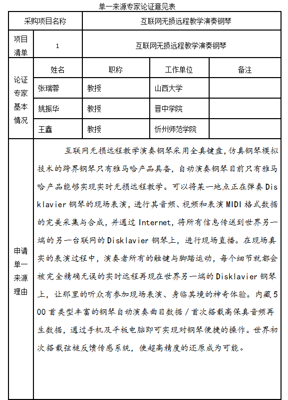 中北大学互联网无损远程教学演奏钢琴单一来源征求意见公示