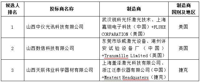 中北大学设备采购项目评标结果公示