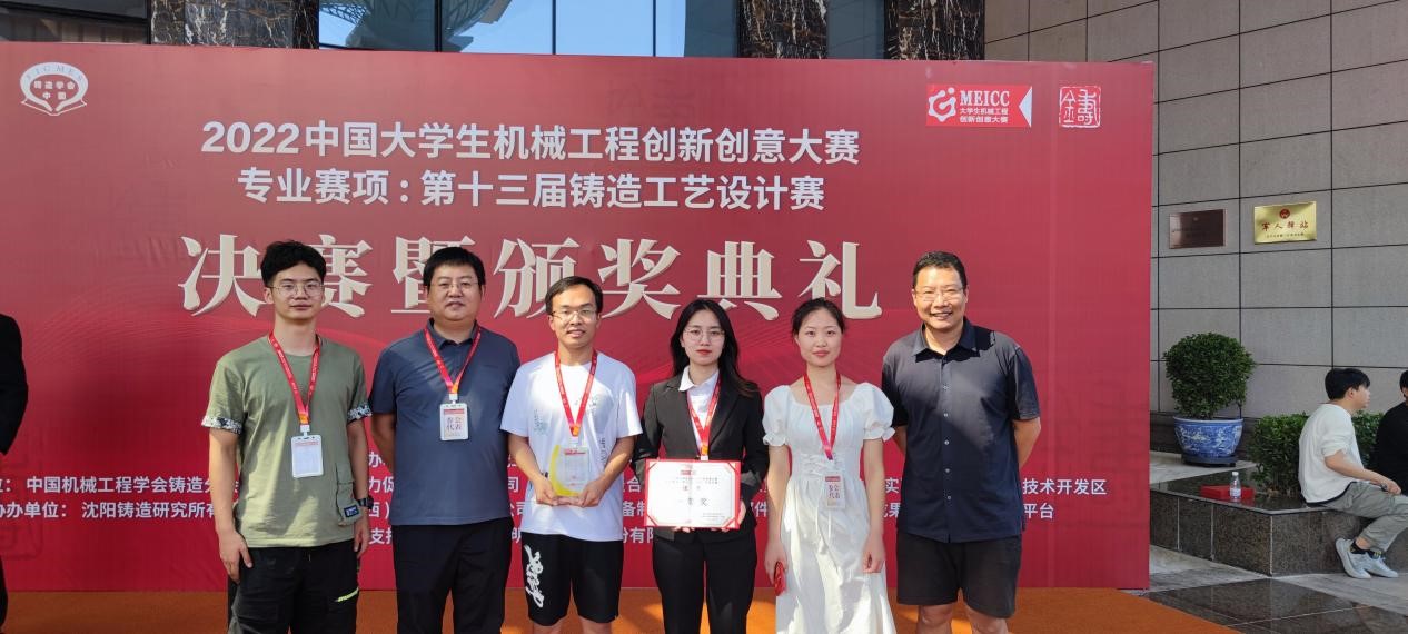 2022年7月2日—7月5日,2022中国大学生机械工程创新创意大赛专业赛项:第十三届铸造工艺设计大赛在山西省高平市举行。中国机械工程学会铸造分会副理事长,高平市长、山西省商务厅副厅长等参加活动并为获奖选手颁奖。本届大赛以传承工匠精神为主题,共吸引到101所高校,3000余名师生参赛,共计提交作品835份。我校学生组成的五支参赛队伍通过初赛和全国总决赛的比拼,以总分第一喜获国家级一等奖1项、国家级三等奖4项的优异成绩,获奖级别及数量居山西高校前列。