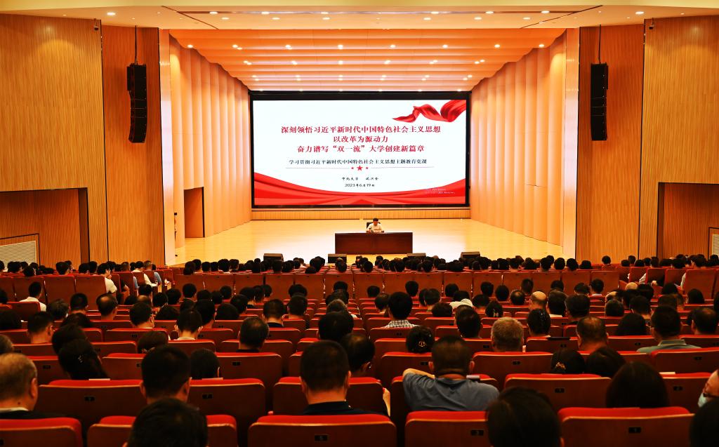 沈兴全强调,全校上下要以主题教育为契机,牢牢把握“学思想、强党性、重实践、建新功”的总要求,持续把理论学习、调查研究、检视整改、推动发展引向深入,拧成一股绳,下好一盘棋,心往一处想,劲往一处使,团结一致向前冲,砥砺奋进新征程,为实现学校高质量发展、“双一流”大学的目标而努力拼搏奋斗。