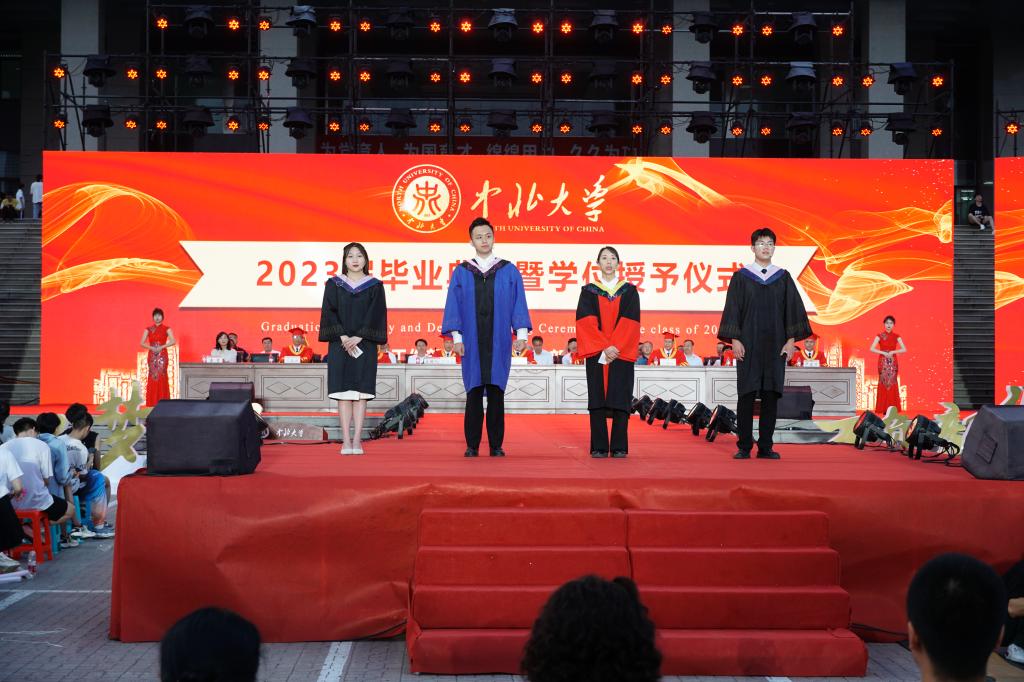 毕业典礼在全体师生奏唱庄严的国歌声中开始。校党委副书记曾建潮宣读《中北大学关于表彰2023届优秀毕业生的决定》,副校长赵贵哲宣读《中北大学关于拟授予2023届毕业生学位的决定》。与会嘉宾和校领导共同为优秀毕业生代表颁发获奖证书,校党委书记沈兴全为博士毕业生代表正冠拨苏。校领导共同为本科、硕士毕业生代表授予学位证书。
