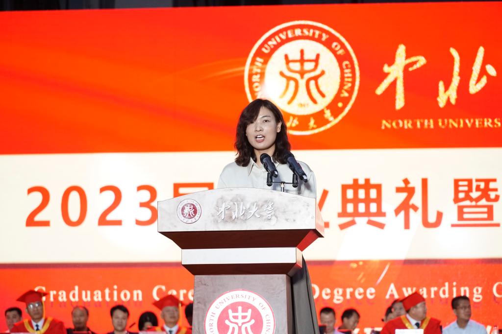 “轻盈数行字,浓抹一生人”“山高水长,师恩难忘”“我在中北尝过笑和泪、有过苦与痛,在这里迷惘、也在这里成长,青春时光、不负尔尔”“愿各自努力,顶峰相见”。4位毕业生代表分别发言表达了对母校、老师、朋友的不舍和对各位毕业生的祝福。