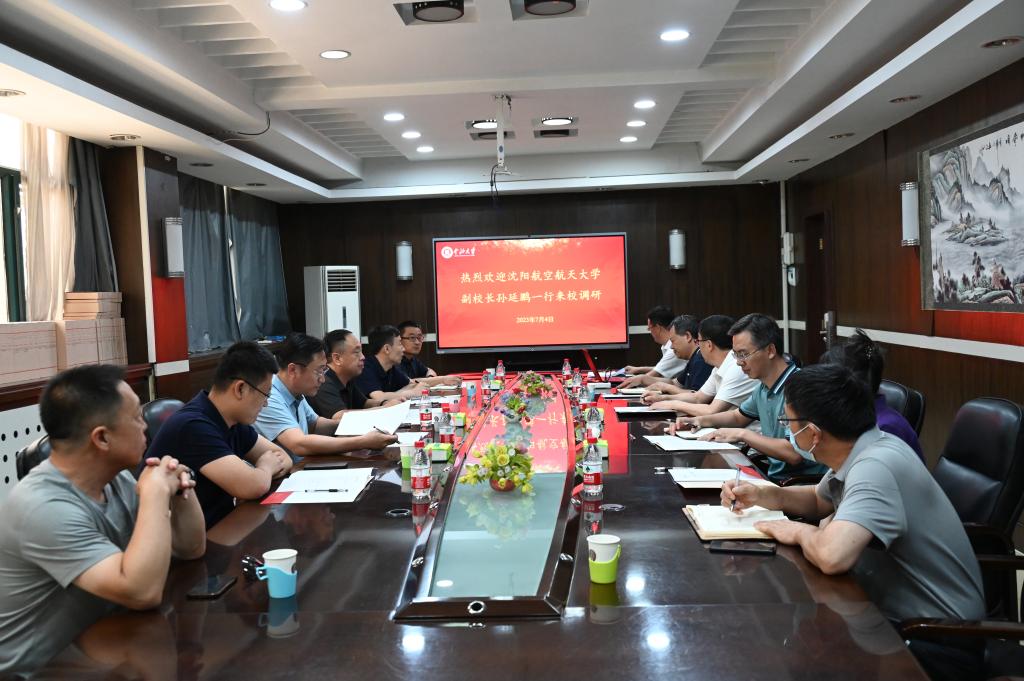孙延鹏详细介绍了沈阳航空航天大学的发展历程、学科建设、师资队伍等情况,希望以此次调研交流为契机,学习中北大学实验室建设的成功经验,推动学校学科建设、办学水平迈上新台阶。