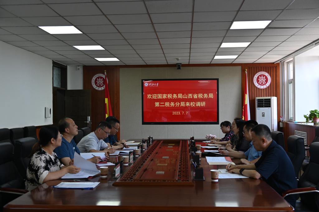 7月7日,国家税务总局山西省税务局第二税务分局局长李晓琳来校调研交流。副校长蔡江辉出席,双方座谈会在德怀楼第四会议室召开。
