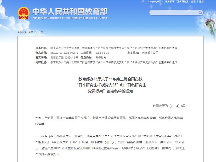 全国高校“百个研究生样板党支部”和“百名研究生党员标兵”创建工作每两年评选一次,主要表彰理想信念坚定、学业成绩优秀、带头作用突出以及师生高度认可的高校研究生。